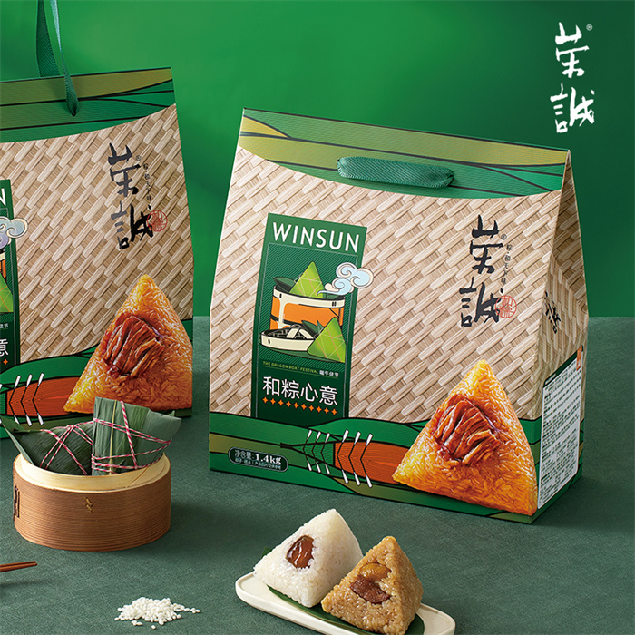 【編 碼】 HZZ2402(25) 【條形碼】 6925755533594 【尺 寸】 29.5x31x13cm 【凈含量】 1.4kg 【規(guī) 格】 1.4kgx6盒/箱 【內容物】 100g經典肉粽x2,100g板栗肉粽x2,100g香菇肉粽x2,100g豆沙粽x2,100g蜜棗粽x2,100g花生蓮子粽x2, 25g定勝糕(綠豆原味)x8